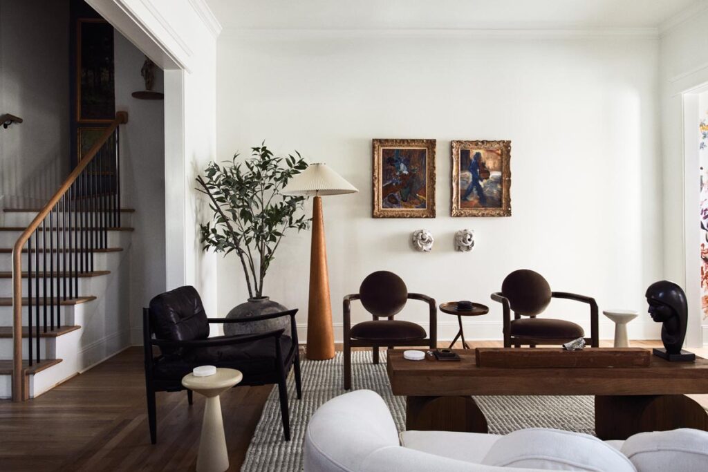 And a piece that incredible and intense shouldn’t just hang over a couch, Maros thought. Instead of playing it safe and letting the art be the only bold focal point in the room, Maros doubled down and placed it over an equally intense graphic Pierre Frey wallpaper.
