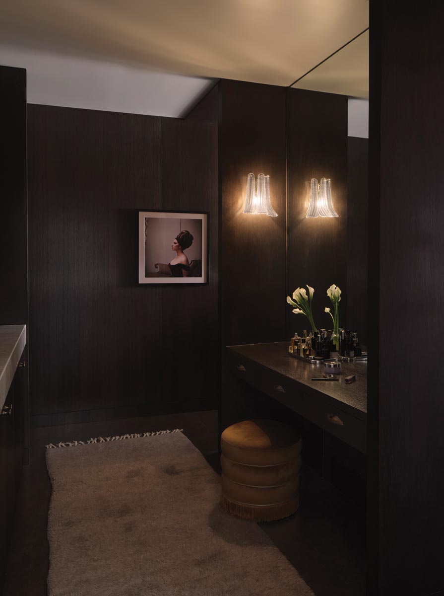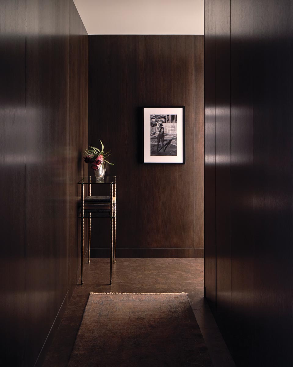 All that dark wood does take up a lot of visual space, which presented a balance challenge that Locante conquered by pulling back and editing in elegant ways.