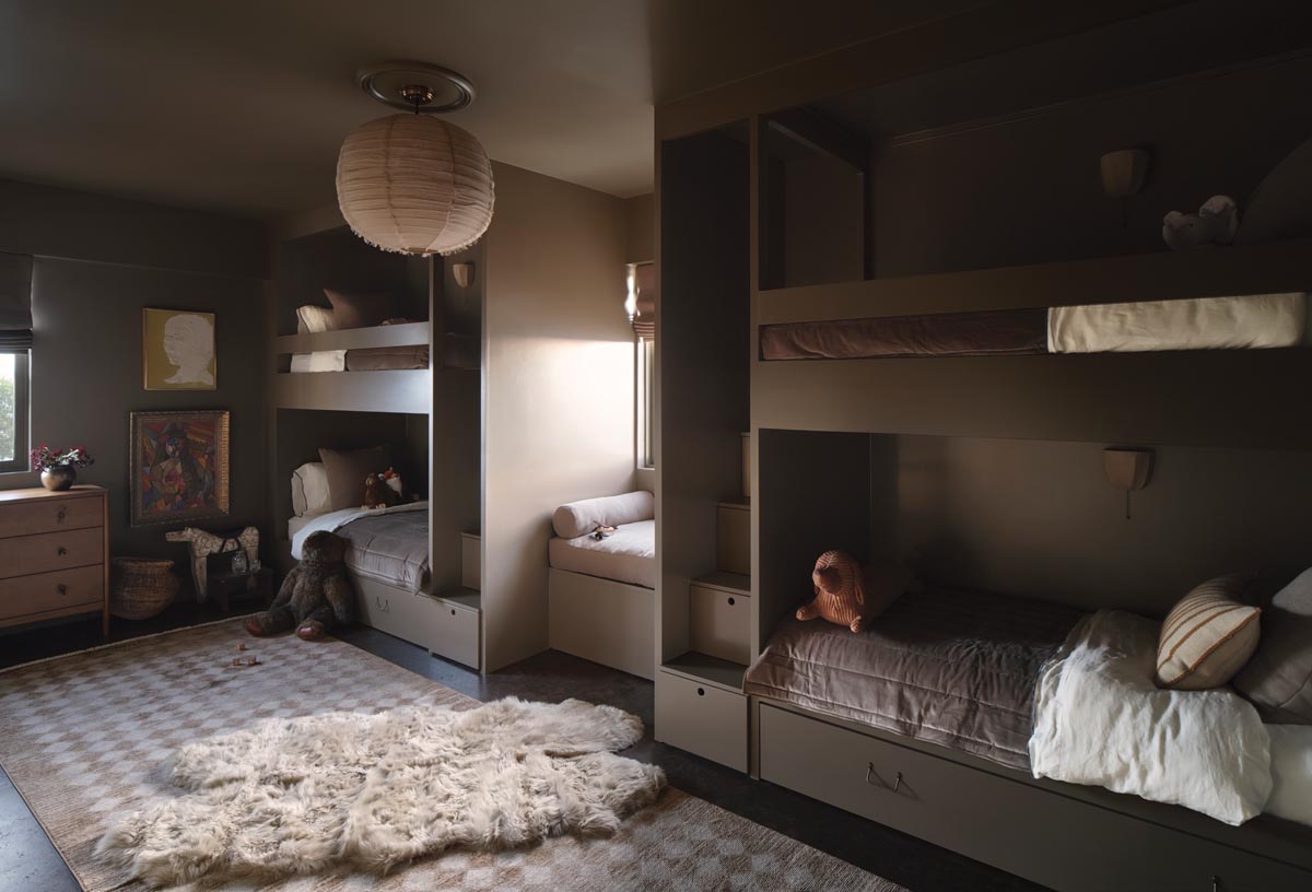 Most of the couple’s design requests were practical: They needed tons of storage. Materials and accommodations had to keep kid-friendliness in the foreground (extra durability, no sharp corners). After years in the Navy, the proud granddad liked to keep things fastidiously clean, so surfaces had to hold up to a good scrub and polish.
