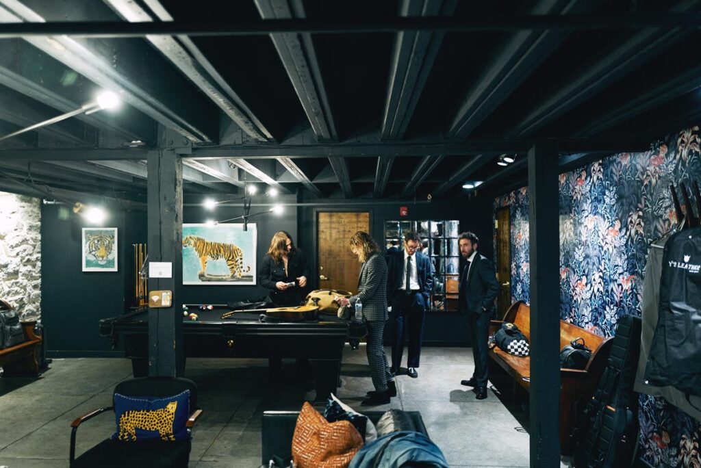 Downstairs in the Tiger Room, the co-designers wrenched cozy and cool, mid-century-basement-bar style out of a once “spooky” space that gave them a full case of the creeps.
