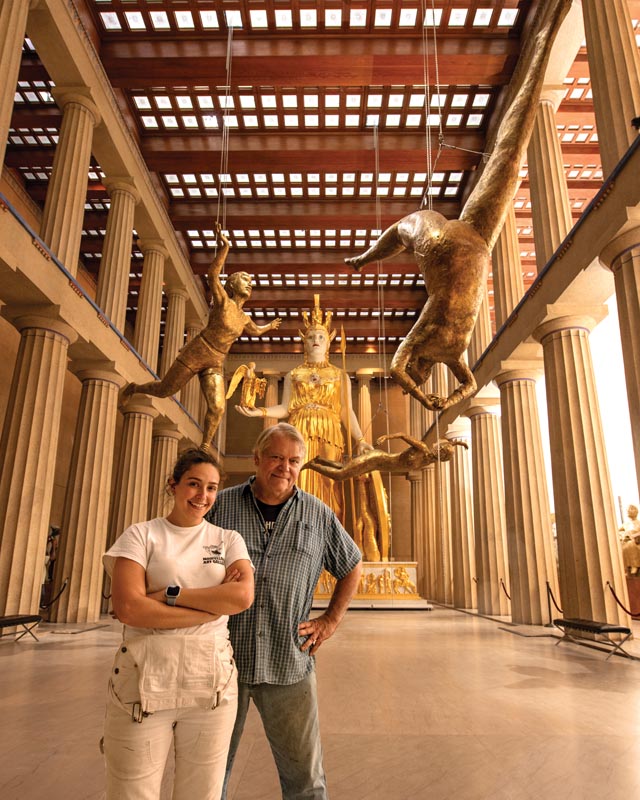 tep up close to the Athena Parthenos statue in Nashville — golden, glinting, stretching 42 feet toward the Parthenon replica’s ceiling — and you’re left dumbstruck by the sheer scope of what she is and represents.
