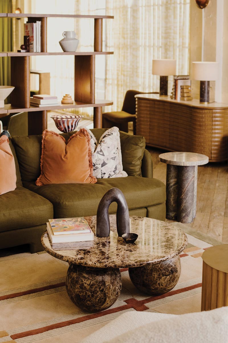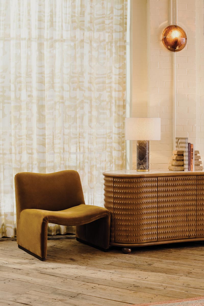 There’s handcrafted furniture in each studio, alongside textiles, lighting and tableware, as well as an expanded range of marbles, upholstery patterns and made-to-order leather designs.